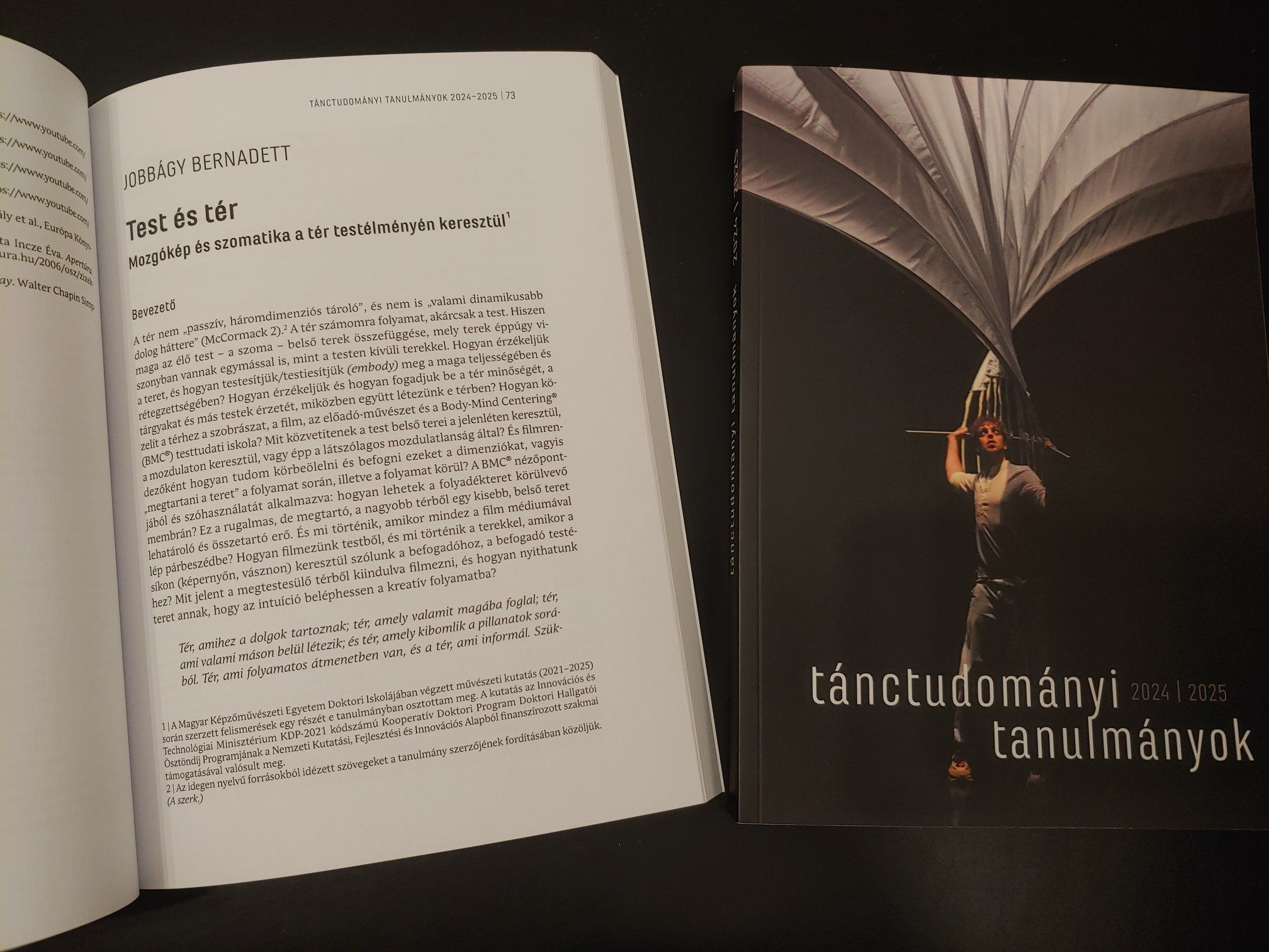 Megjelent a Tánctudományi tanulmányok aktuális száma, benne Test és tér: Mozgókép és szomatika a tér testélményén keresztül című írásom.